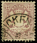 | Zusatzinformationen und Suchstichworte: | 366. Auktion Heinrich Köhler Auktionstermin 19.–24.03.2018 Los 2792 12 Kr. lila, Wz. 1Y, mit EKr. "ZWEIBRÜCKEN 25 APR", vollzähnig und in frischer Farbe, ein tadelloses und sehr schönes Exemplar dieser seltenen Marke, sign. Brun und Pfenninger mit Fotoattest (1968) sowie Fotoattest Brettl BPP (1987) (Mi. 6.000,-) Zuschlag 2.200,00 EUR |