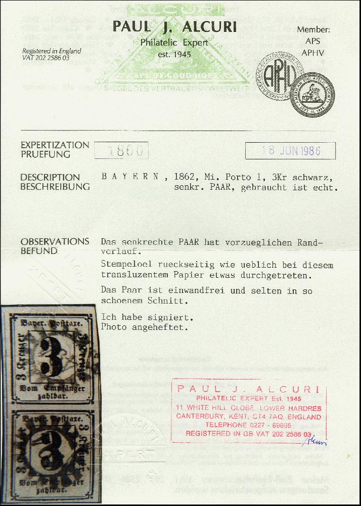 | Prüfgebiet: | Altdeutschland Bayern Portomarken |