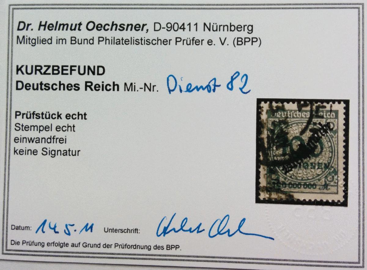 | Prüfgebiet: | Deutsches Reich Dienstmarken 1874 - 1945 |