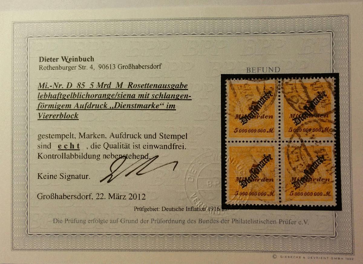 | Prüfgebiet: | Deutsches Reich Dienstmarken 1874 - 1945 |