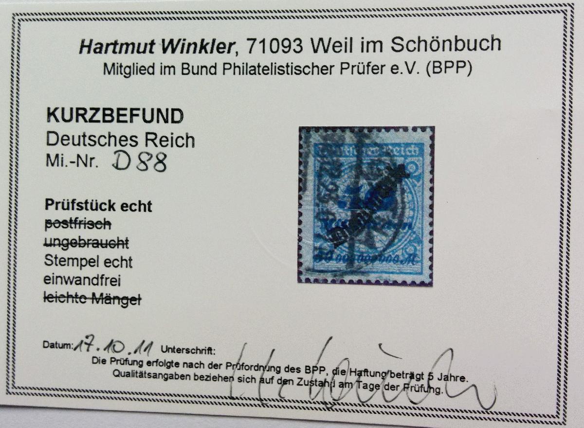 | Prüfgebiet: | Deutsches Reich Dienstmarken 1874 - 1945 |