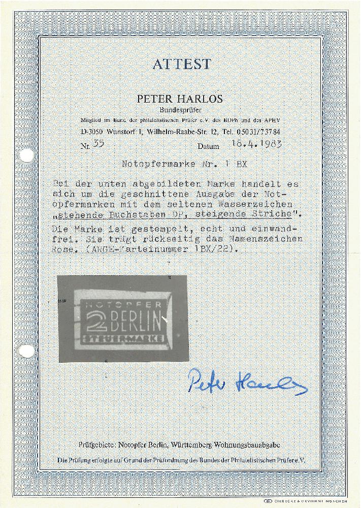| Zusatzinformationen und Suchstichworte: | Notopfer N. 1X Wasserzeichen kopfstehend |
