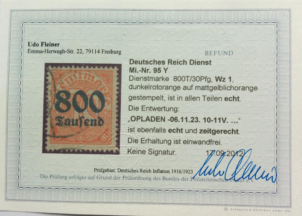| Prüfgebiet: | Deutsches Reich Dienstmarken 1874 - 1945 |