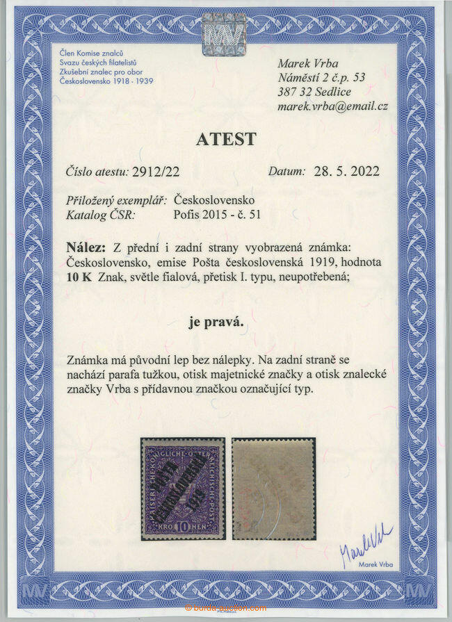 | Zusatzinformationen und Suchstichworte: | Burda 69. Auktion 10. - 11. September 2022 Los 2349 Tschechoslowakei 1918-1939 Pof. 51, Wappen 10K hellviolett, Aufdruck-Type I. ; postfrisch postfrisch, Attest Vrba, Kabinettbriefstück! Zuschlag 640,00 EUR |
