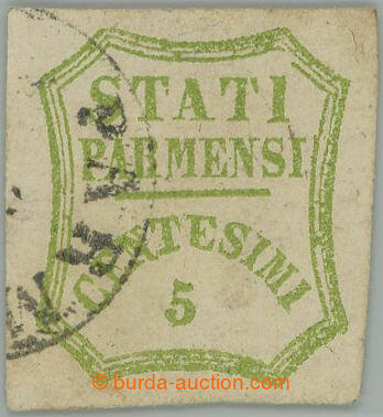 | Zusatzinformationen und Suchstichworte: | Burda 69. Auktion 10. - 11. September 2022 Los 79 Italien Staaten Parma 1859 GOVERNO PROVVISORIO / Sass.13, Postage STATI PARMENSI 5C greenyellow with CDS PARMA; very fine with certificate Oliva, exp. Buhler, c.v.. 70.000EUR, sought! Zuschlag 4.400,00 EUR |