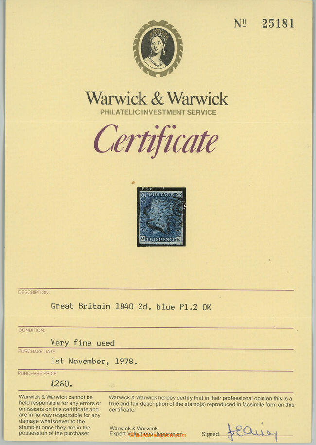 | Prüfer: | Warwick & Warwick, Philatelic Investment Service (Händlergarantien) |