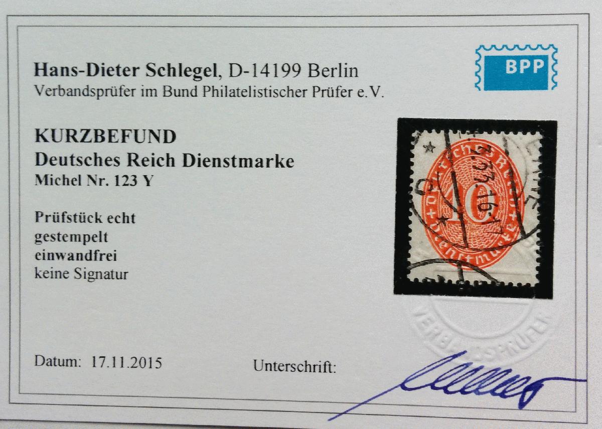 | Prüfgebiet: | Deutsches Reich Dienstmarken 1874 - 1945 |