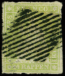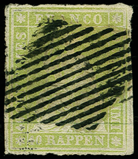 | Zusatzinformationen und Suchstichworte: | 366. Auktion Heinrich Köhler Auktionstermin 19.–24.03.2018 Los 53 40 Rp. gelblichgrün, farbfrisch und allseits weißrandig geschnitten, sehr sauber mit schwarzer eidgenössicher Raute entwertet, Kabinett, Fotoattest Kimmel (2005), Ausruf 180,00 EUR |