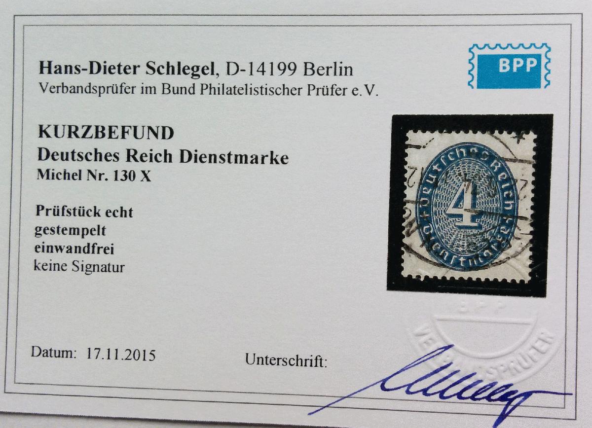 | Prüfgebiet: | Deutsches Reich Dienstmarken 1874 - 1945 |