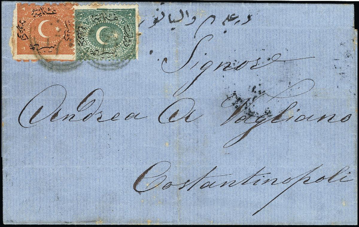 | Zusatzinformationen und Suchstichworte: | 378. Auktion Heinrich Köhler Auktionstermin 21.-26. März 2022 Los 4009 „Balcik“, all arabic double circle in blue, 2 strikes on Duloz 2 pia. red and 20 pa. green on entire letter to Constantinople, some minor toning, otherwise fine and scarce, opinion Todd AIEP Zuschlag 220,00 EUR |