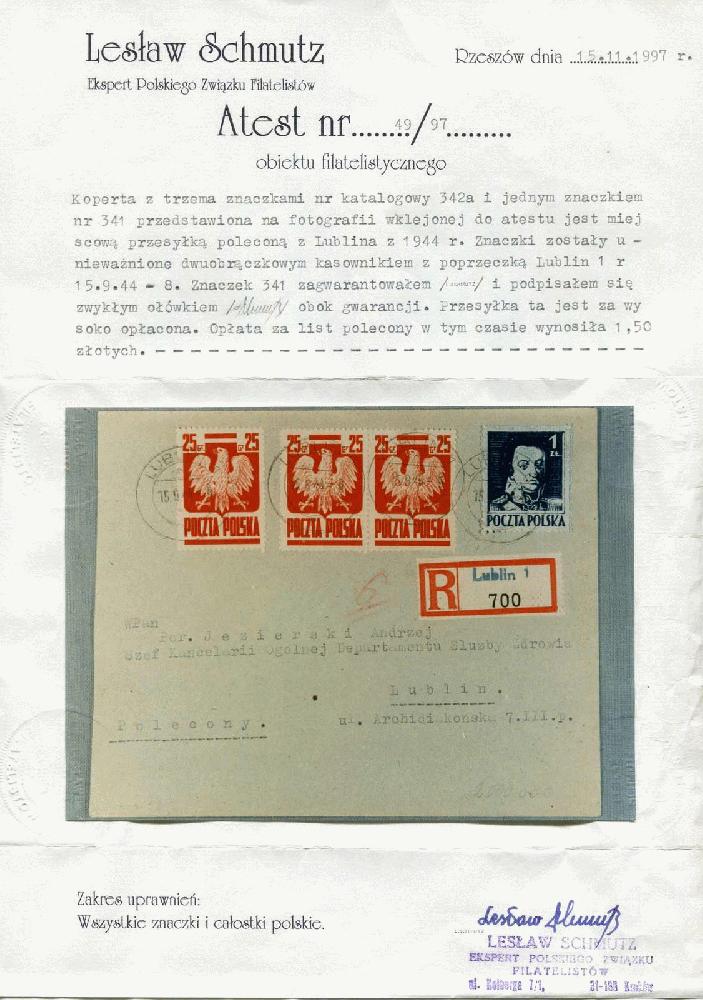 | Zusatzinformationen und Suchstichworte: | Loth 188. Auktion 28. Oktober 2022 Los 3122 Polen 1 Zl. Freiheitskämpfer, mit 25 Gr. (3) auf Orts-Einschreiben von Lublin 15.9.44, etwas überfrankiert, sehr seltene Bedarfsverwendung, Fotoattest Schmutz Ausruf 300,00 EUR |