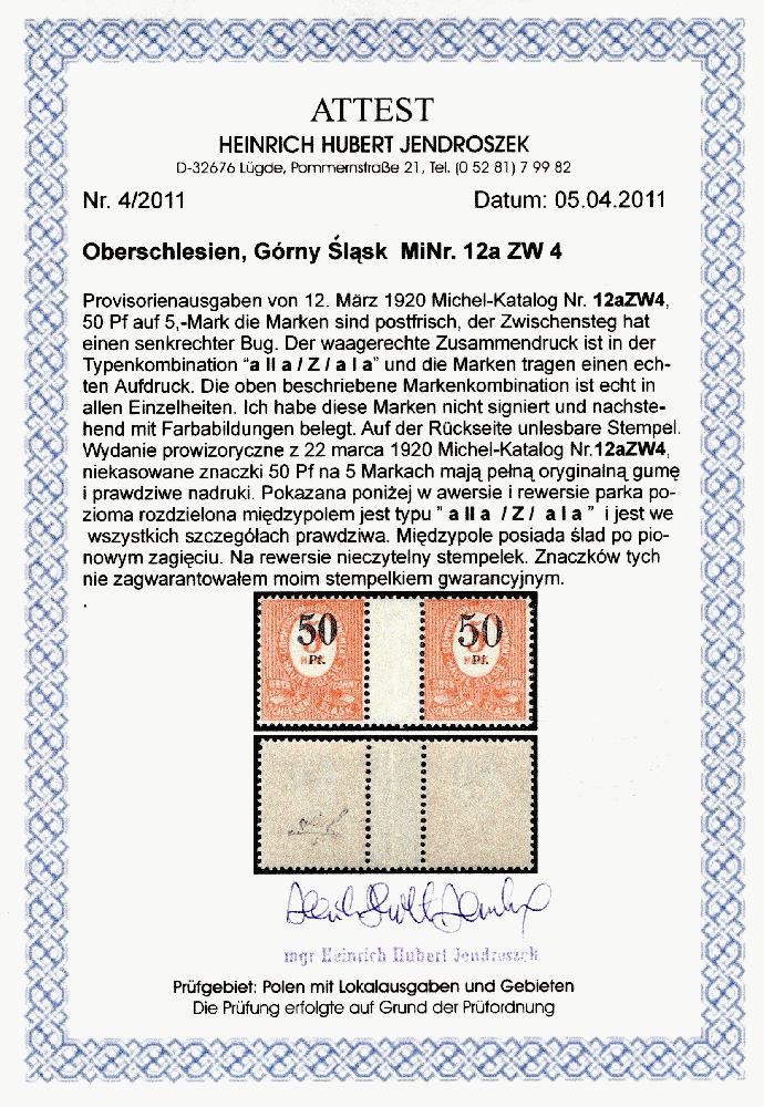 | Zusatzinformationen und Suchstichworte: | Georg Bühler 335. Auktion 17. September 2022 Los 3551 Oberschlesien Waag. Zwischenstegpaar (Bug im Zwischensteg), Pracht, Fotoattest Jendroszek (Katalogwert: 1800 Euro) Ausruf 500,00 EUE |