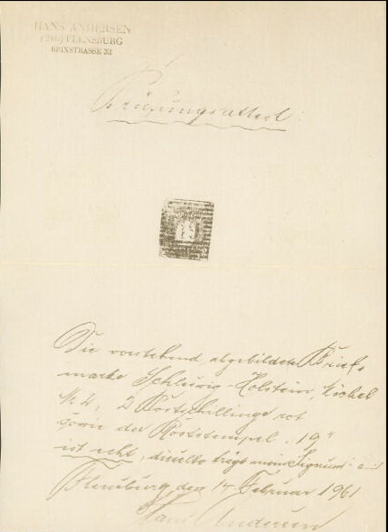 | Zusatzinformationen und Suchstichworte: | nordphila 492. Briefmarkenfernauktion 7. August 2023 Los 445 Altdeutschland Schleswig Holstein 1850, 2 S lebhaftrosa mit zentrischem klaren Roststempel "19" (KIEL BAHNHOF), Marke unten leicht angeschnitten, sonst breitrandig, oben mit Teil der Nachbarmarke, farbfrisches Prachtstück, gepr. W. Engel mit Befund, Mi. 9000.- Ausruf 1.900,00 EUR |