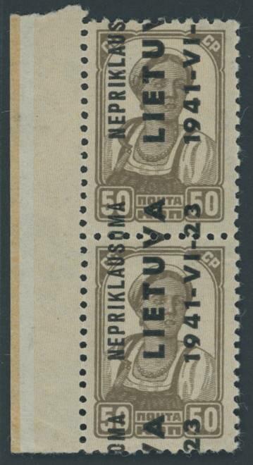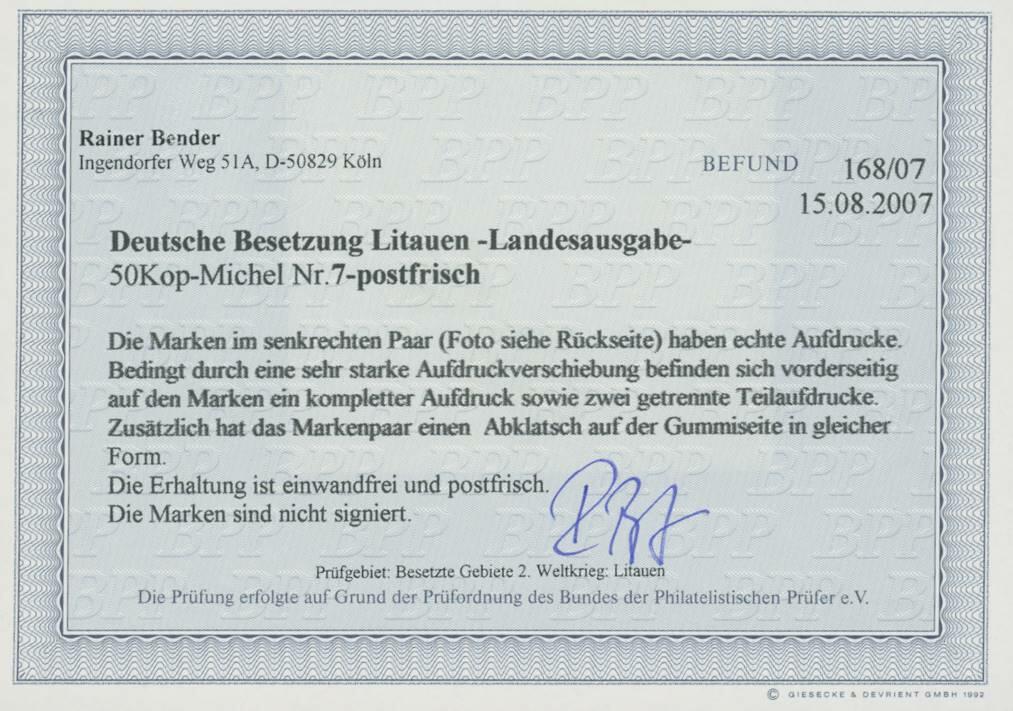 | Zusatzinformationen und Suchstichworte: | Ulrich Felzmann 34. e@uction 5. - 9. September 2022 Los 14581 Deutsche Besetzung II. WK Litauen 50 K im senkrechten Paar vom linken Rand mit senkrecht stark verschobenem Aufdruck sowie Abklatsch rückseitig, tadellos postfrisch, Pracht, Fotobefund Bender BPP "... einwandfrei" Ausruf 50,00 EUR |