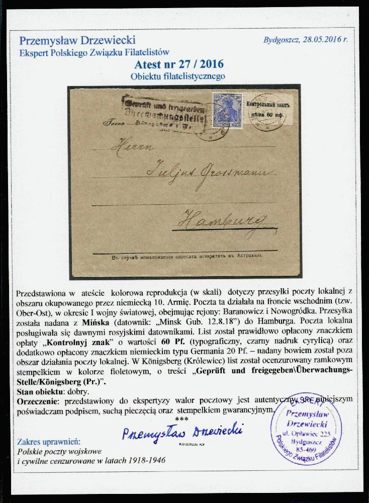 | Prüfgebiet: | Deutsche Besetzung WK 1 Postgebiet Ober Ost Landesbotenpost |