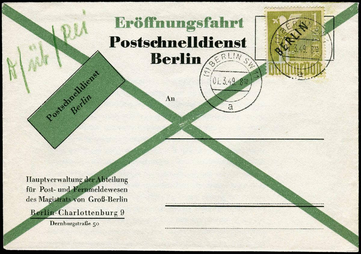 | Zusatzinformationen und Suchstichworte: | Schlegel Online-Shop Los 4440600146 Berlin 1949, Postschnelldienst Eröffnungsfahrt, amtl. Umschlag als sogen. Kontrollumschlag ab Berlin SW 11 =a= 1.3.49 8.40 Uhr ohne Anschrift mit Leitvermerk =D / üb Rei= nach Frohnau 11.00 Uhr Ankunft. Noch mit Einlageblatt. Fotoattest Eliades BPP Festpreis 220,00 EUR |