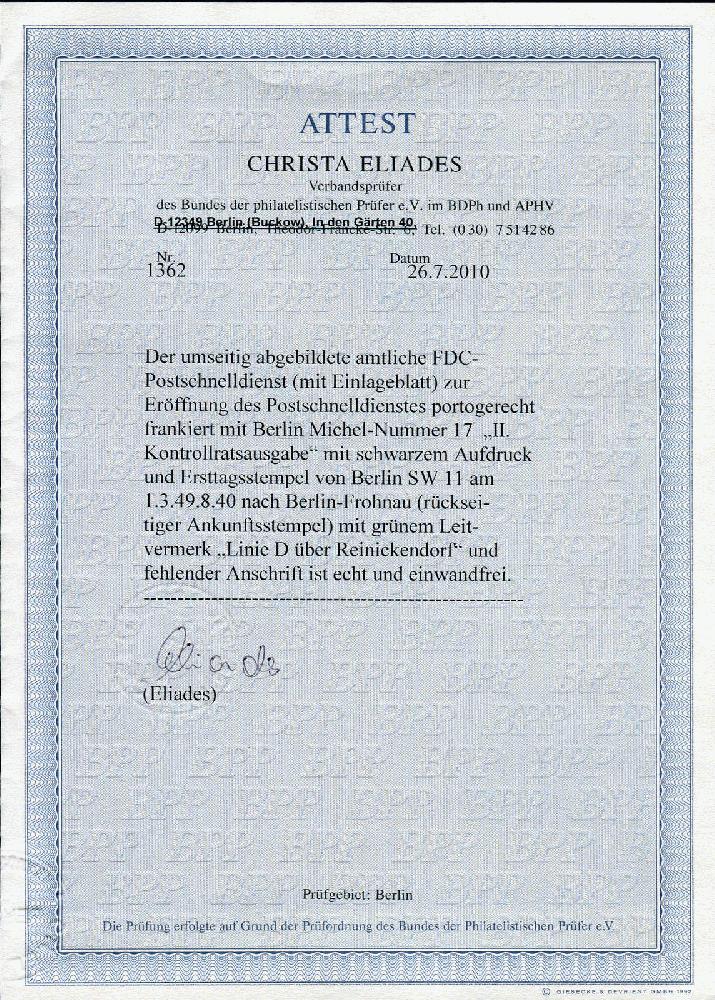 | Prüfer: | Eliades, Christa (BPP (Bund Philatelistischer Prüfer)) |