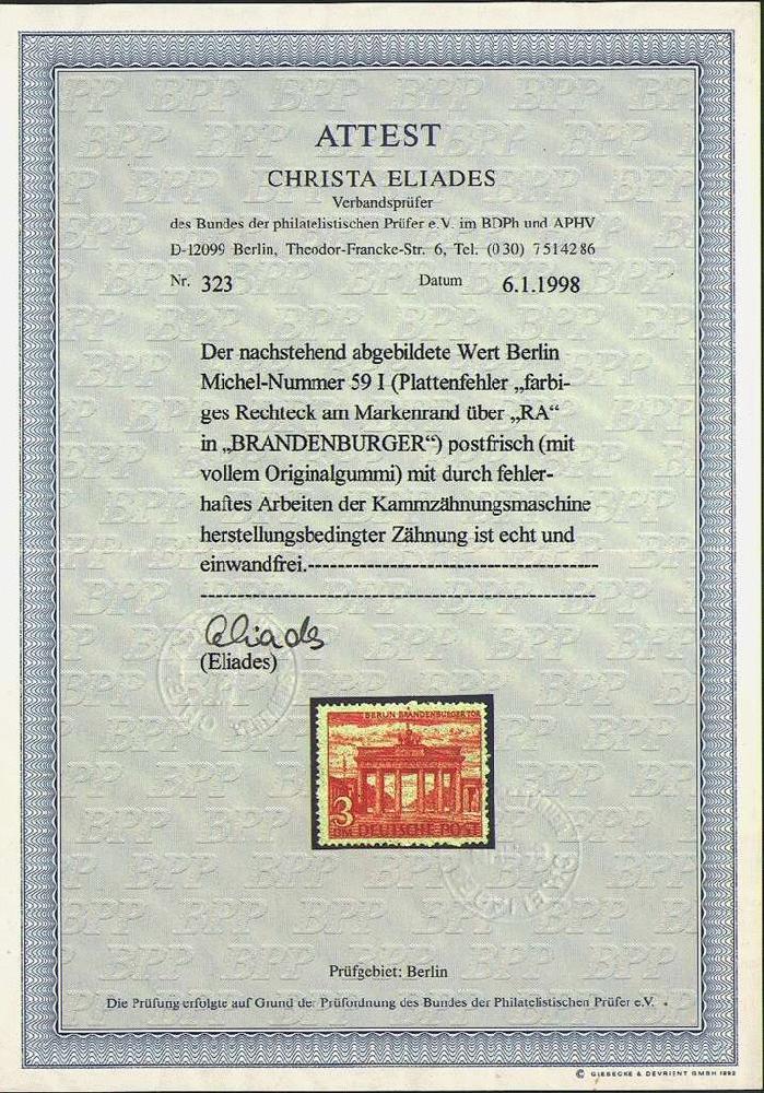 | Prüfer: | Eliades, Christa (BPP (Bund Philatelistischer Prüfer)) |