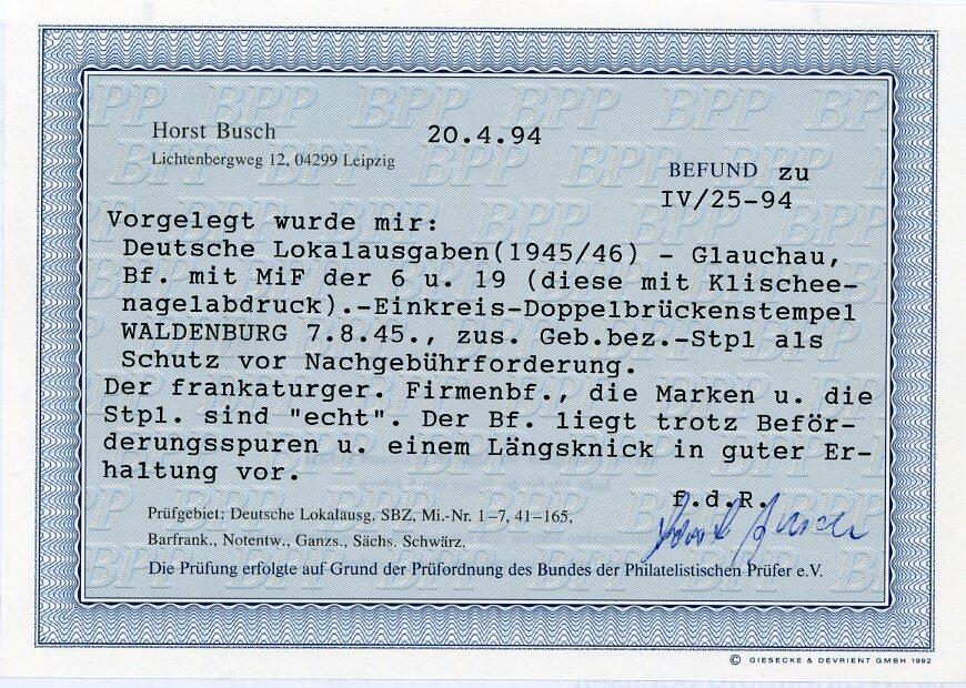 | Prüfgebiet: | Deutsche Lokalausgaben 1945 Glauchau |