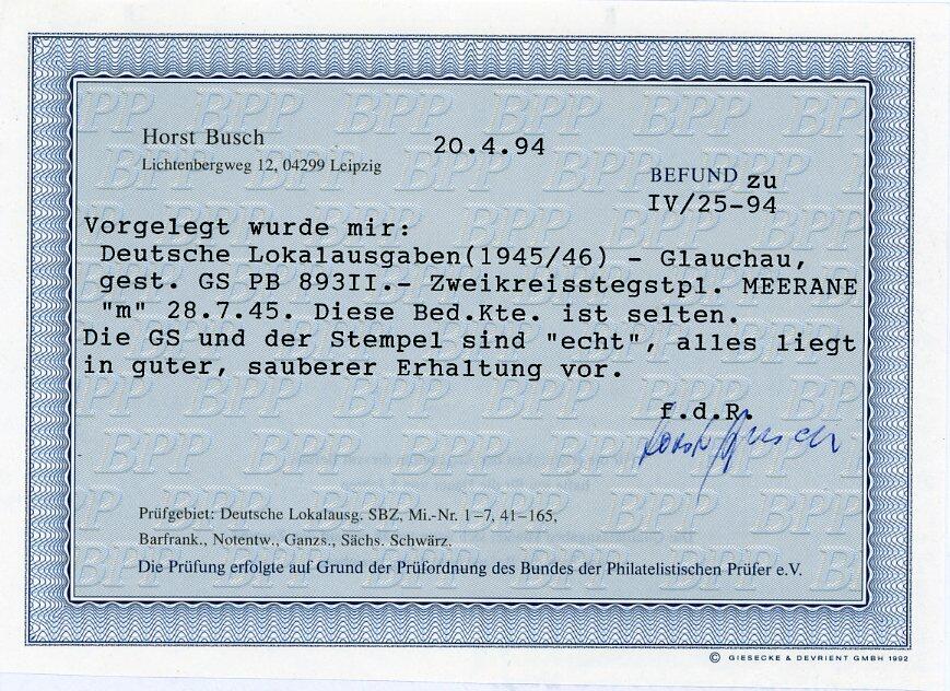 | Prüfgebiet: | Deutsche Lokalausgaben 1945 Glauchau |