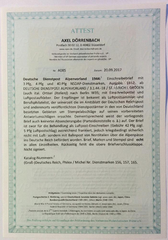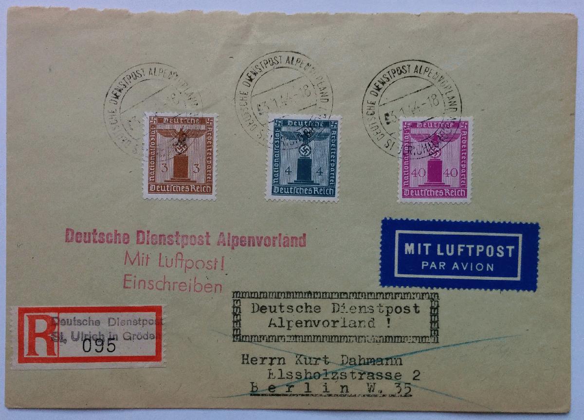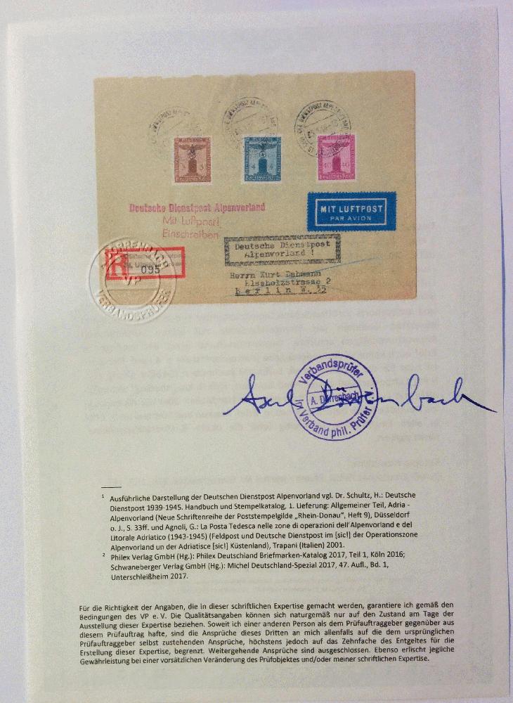 | Zusatzinformationen und Suchstichworte: | Gestempelt, Brief, Einschreiben, Deutsche Dienstpost Alpenvorland |