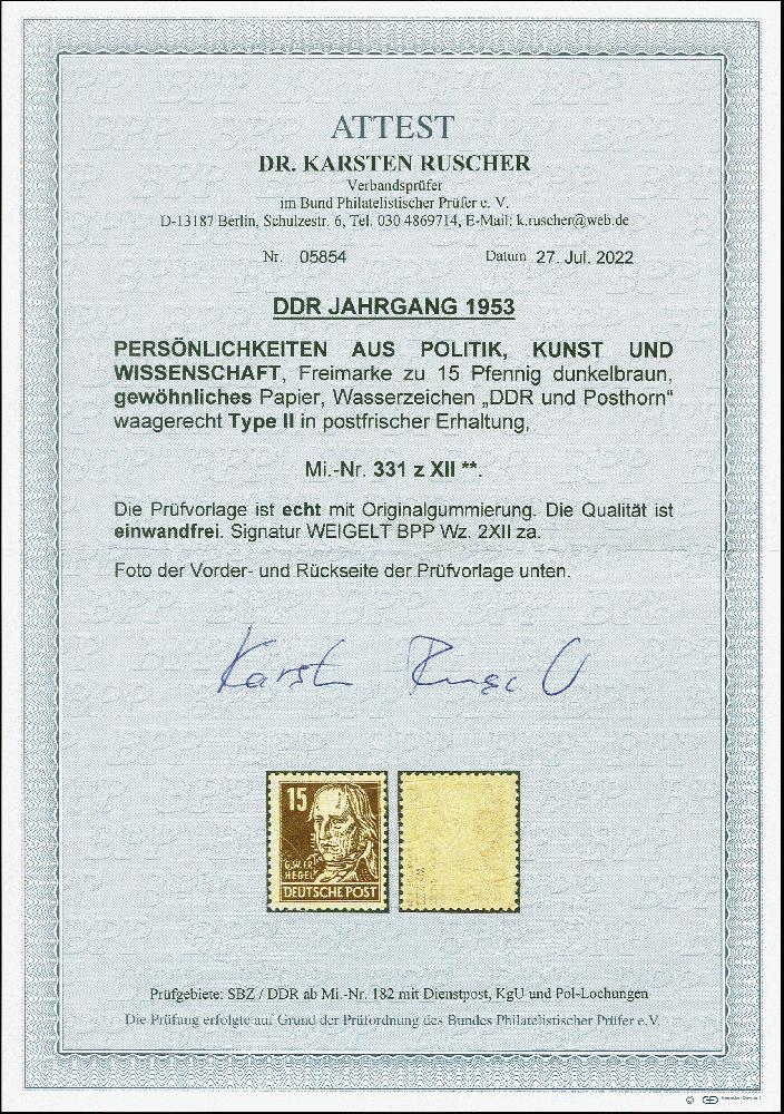 | Prüfer: | Ruscher, Karsten (BPP (Bund Philatelistischer Prüfer)) |