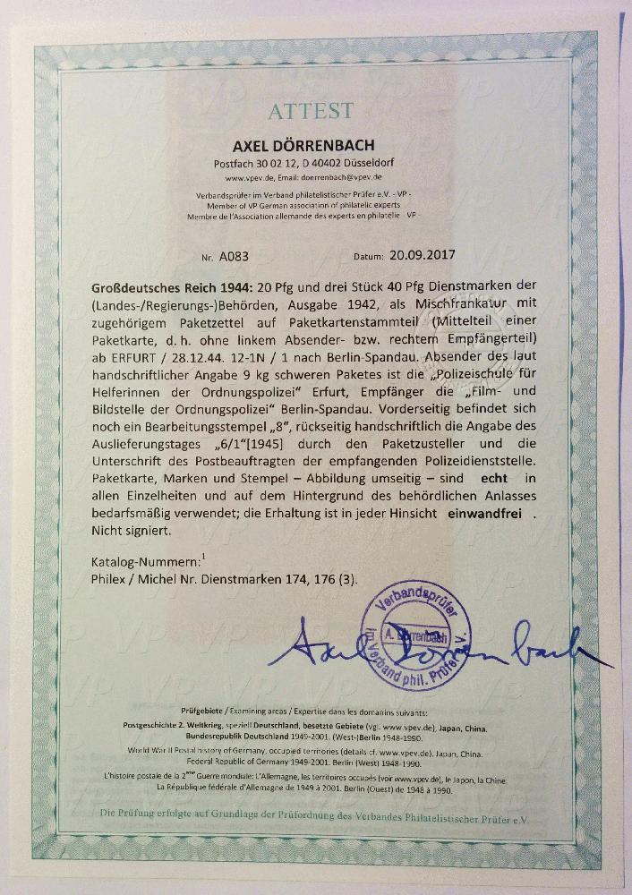 | Prüfgebiet: | Deutsches Reich Dienstmarken 1874 - 1945 |