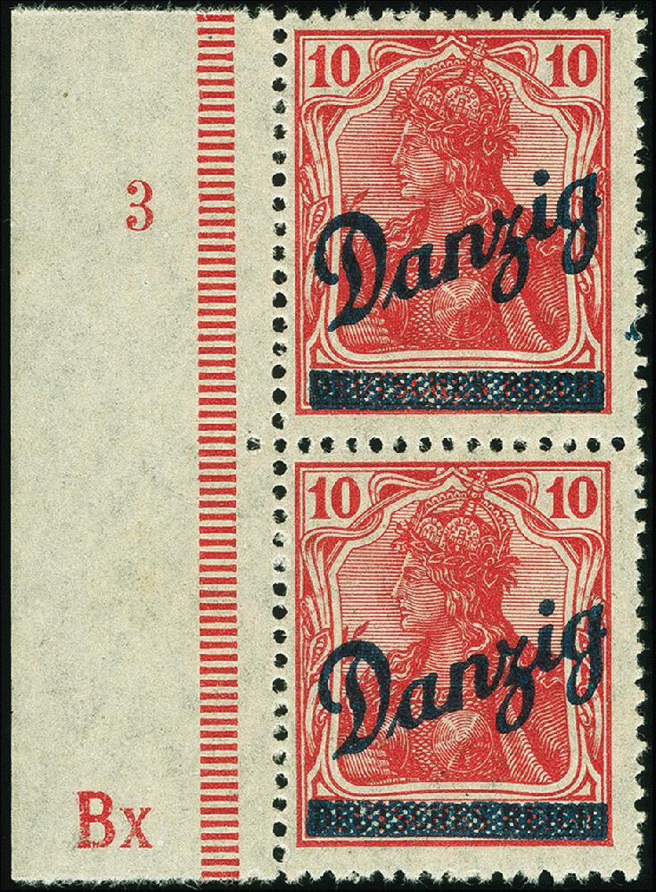 | Zusatzinformationen und Suchstichworte: | Heinrich Köhler 379. Auktion 19. - 24. September 2022 Los 3405 Kleiner Innendienst 10 Pfg. rötlichkarmin im senkrechten Paar mit linkem Bogenrand, mit Plattennummer "3" sowie Druckerzeichen "Bx", postfrisch, tadellos, Fotoattest Gruber BPP (2022) Zuschlag 100,00 EUR |
