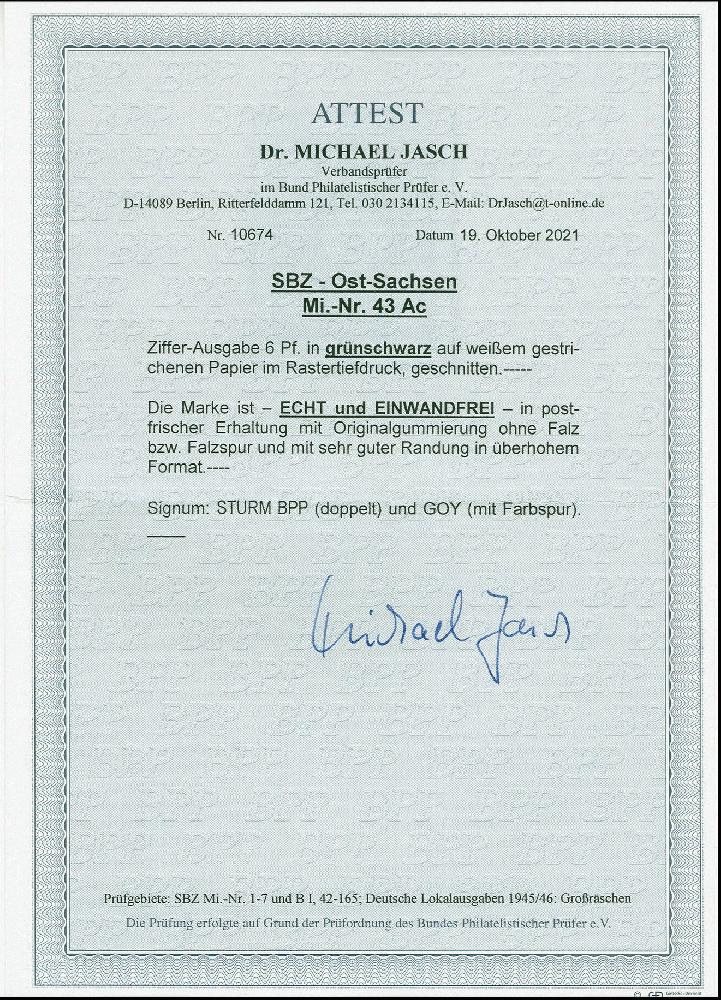 | Prüfgebiet: | Alliierte Besetzung SBZ Ost-Sachsen |