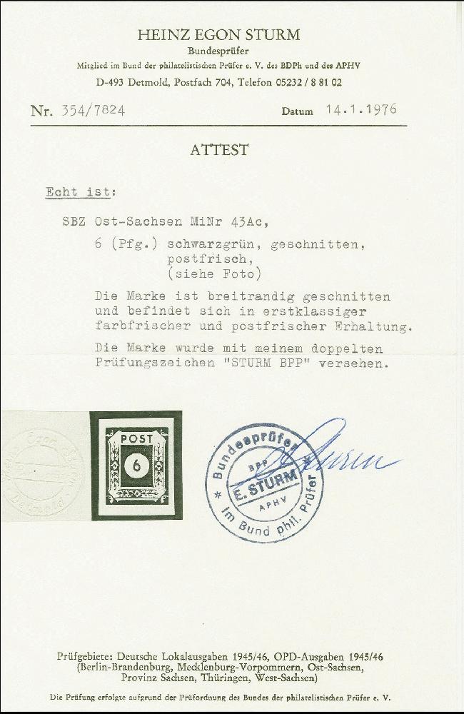 | Prüfer: | Sturm, Heinz Egon (BPP (Bund Philatelistischer Prüfer)) |