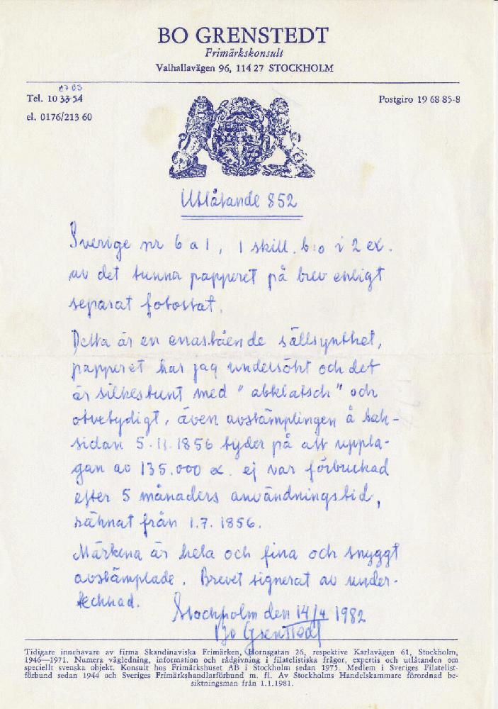 | Zusatzinformationen und Suchstichworte: | Postiljonen 237. Int. Briefmarken Auktion 29. September - 01. Oktober 2022 Los 1042 Schweden Lokal Marke Beautiful cover with two copies 1 Sk. Bco on thin paper, each with a superb star canc. F=35.000. Cert. Grenstedt. VERY FINE & RARE. Ausruf 750,00 EUR |