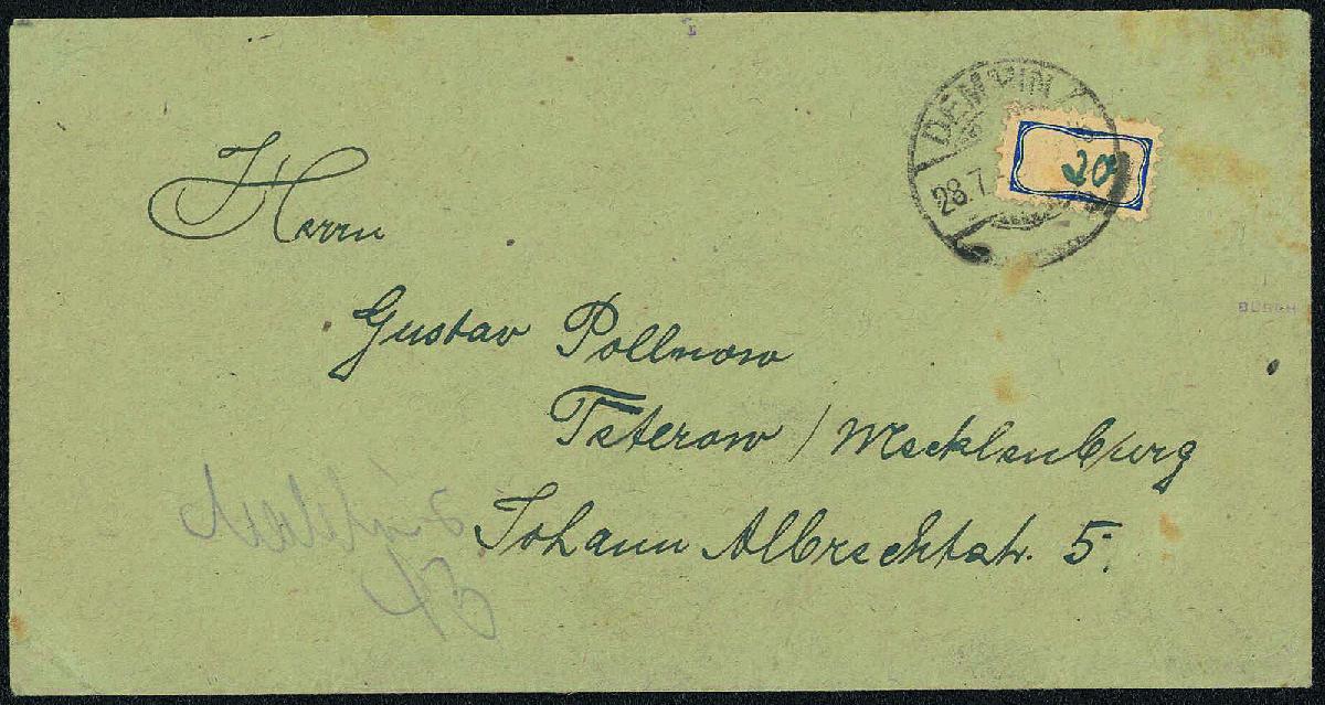| Zusatzinformationen und Suchstichworte: | Gert Müller 115. Auktion 25. - 27. August 2022 Los 4479 Deutsche Lokalausgabe Demmin 20 Pfg. blau, kleines Format, als portogerechte Einzelfrankatur auf bedarfsmäßig verwendetem Brief, etwas gelbfleckig, mit Stegstempel "DEMMIN 28.7.45." nach Teterow/Mecklenburg. Es sind nur wenige Bedarfsbriefe dieser Ausgabe bekannt geworden! Fotoattest Busch BPP Ausruf 1.000,00 EUR |