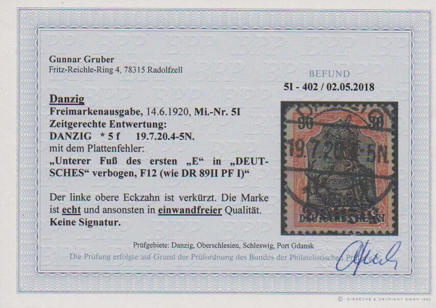 | Prüfer: | Gruber, Gunnar (BPP (Bund Philatelistischer Prüfer)) |