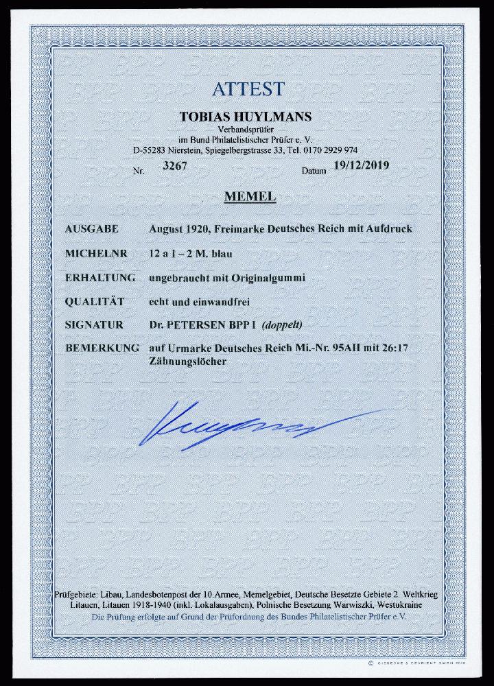 | Prüfer: | Huylmans, Tobias (BPP (Bund Philatelistischer Prüfer)) |