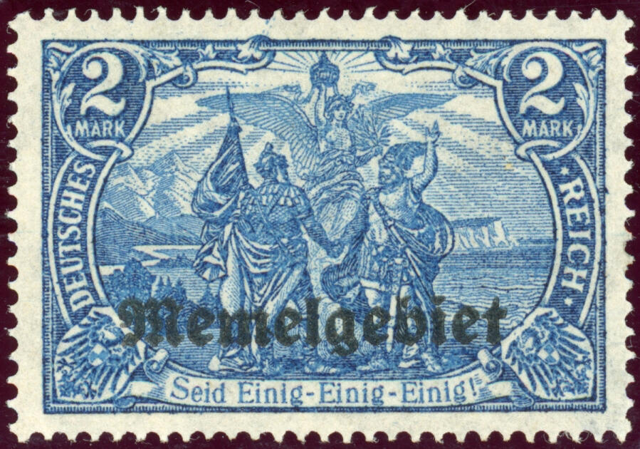 | Zusatzinformationen und Suchstichworte: | Klüttermann - 4. Auktion 28. Juli - 5. August 2022 Los 6193 Memel 2 M. blau in seltener Zähnung 26:17 Zhnl. in tadelloser ungebrauchter Erhaltung, FA Huylmans Katalogwert: 1000 Ausruf 300,00 EUR |