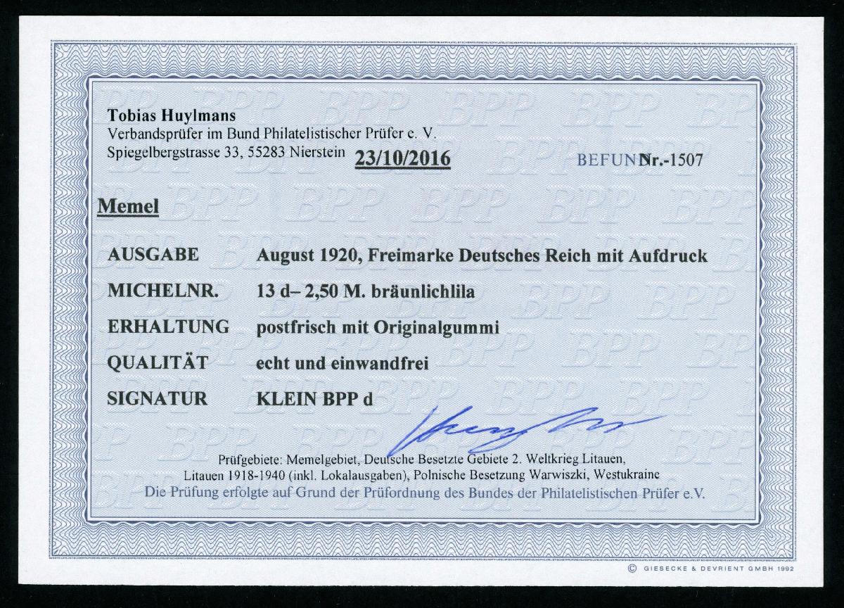 | Prüfer: | Huylmans, Tobias (BPP (Bund Philatelistischer Prüfer)) |