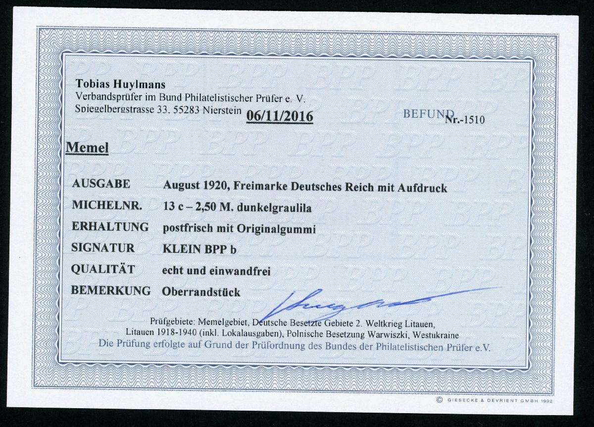 | Prüfer: | Huylmans, Tobias (BPP (Bund Philatelistischer Prüfer)) |