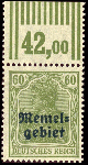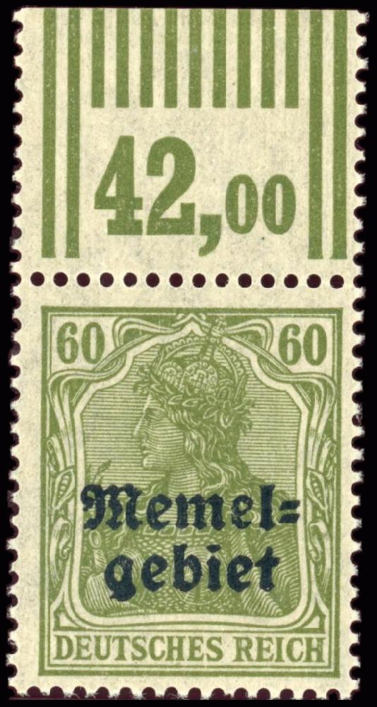 | Zusatzinformationen und Suchstichworte: | Klüttermann - 4. Auktion 28. Juli - 5. August 2022 Los 6201 Memel 60 Pfg. Germania senkrechte Gummiriffelung, postfrisches Luxus-Oberrandstück Walze 2'9'2, im Michel nicht gelistet und die x werte schon -,-, Liebhaberstück mit FA Huylmans Ausruf 650,00 EUR |