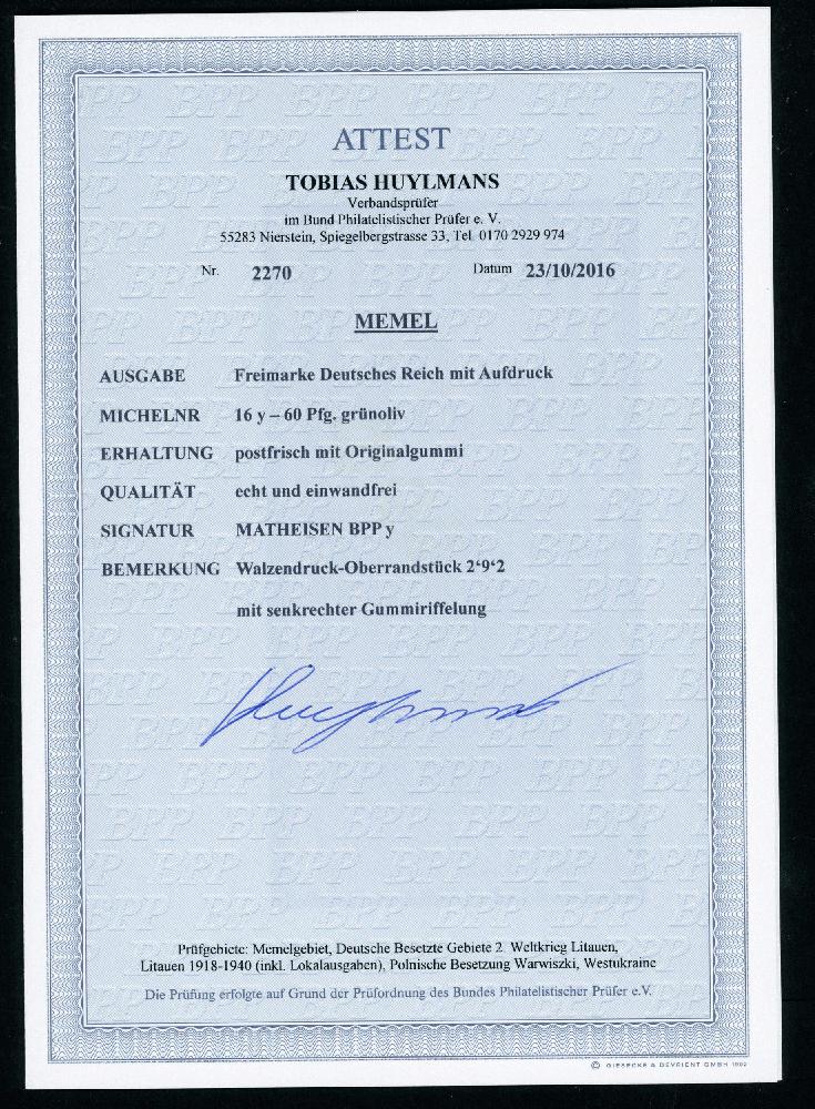 | Prüfer: | Huylmans, Tobias (BPP (Bund Philatelistischer Prüfer)) |