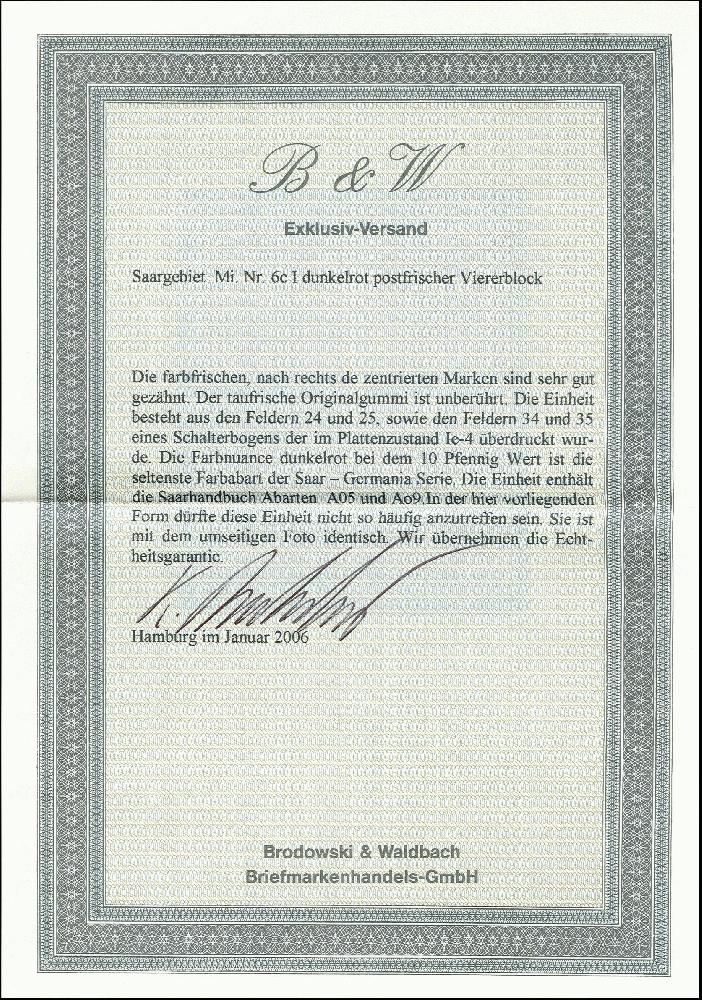 | Prüfer: | Brodowski & Waldbach, Briefmarkenhandels GmbH (Händlergarantien) |