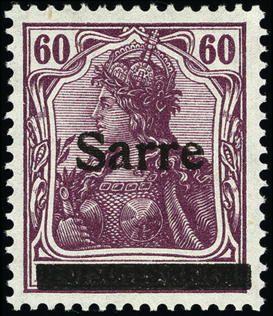 | Zusatzinformationen und Suchstichworte: | Heinrich Köhler 379. Auktion 19. - 24. September 2022 Los 3357 Saargebiet 1920, Germania 60 Pfg. rosalila mit Aufdrucktype I, postfrisch, tadellos, doppelt sign. Dr. Dub und Fotoattest Burger BPP (1996) Ausruf 120,00 EUR |