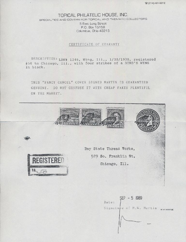| Zusatzinformationen und Suchstichworte: | Christoph Gärtner 54. Auktion 18. - 19. Oktober 2022 Los 3498 D USA 1930, "Flügel", Fancycancel, vier klare Abschläge auf eingeschriebenem auffrankiert Ganzsachenumschlag nach Chicago, auf der Rückseite Abfertigung und Ankunftsstempeln 30 + 31 Jan 1930. signiert und Attest M. W. Martin/aktuell philatelistisch Haus. Ausruf 60,00 EUR |