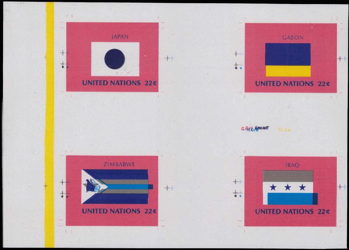 | Zusatzinformationen und Suchstichworte: | 41. Jean-Paul Bach Auktion 17.-20. November 2022 Los 597 UNO New York 1987, 22 C. Japan to Iraq, block of four flags, print on rose backrground, imperforrate, unmounted mint. On original paper with original gum, the proos is printed in the issued arrangement of the flags in a block of four. when the UN archuve was sold in 2003 this proof was not included. Extrem seltene Farbandruckprobe in fehlerfreier Erhaltung. Unikat! Attest BP. Ausruf 1.500,00 CHF |