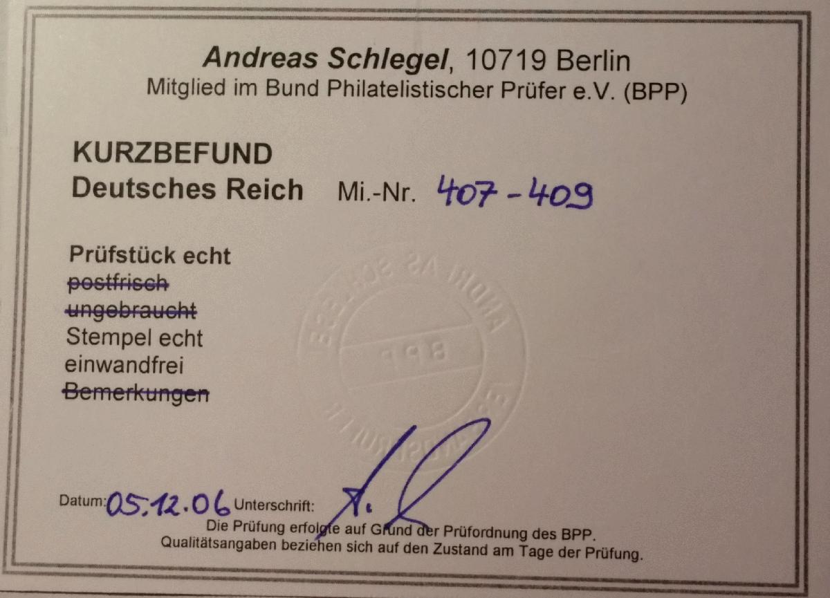 | Prüfer: | Schlegel, Andreas (BPP (Bund Philatelistischer Prüfer)) |