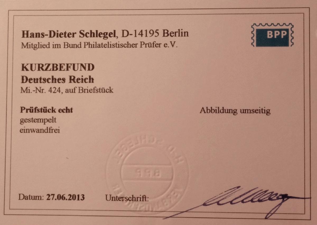 | Prüfer: | Schlegel, Hans-Dieter (BPP (Bund Philatelistischer Prüfer)) |