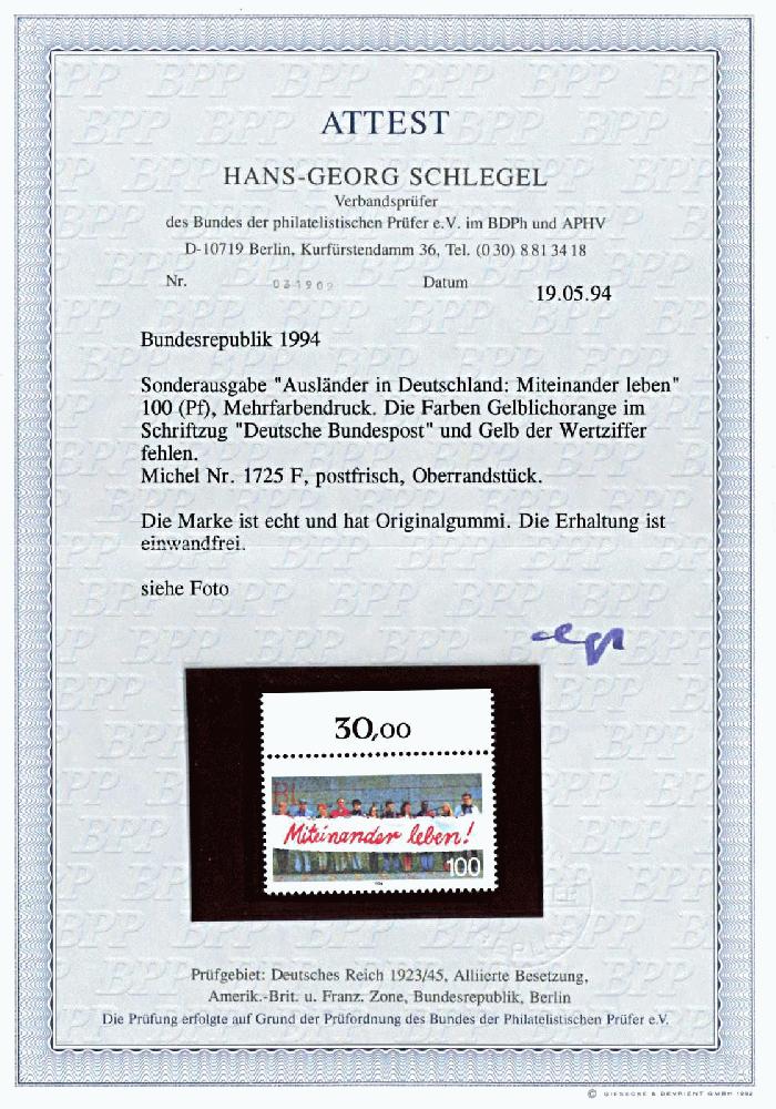 | Prüfer: | Schlegel, Hans-Georg (BPP (Bund Philatelistischer Prüfer)) |