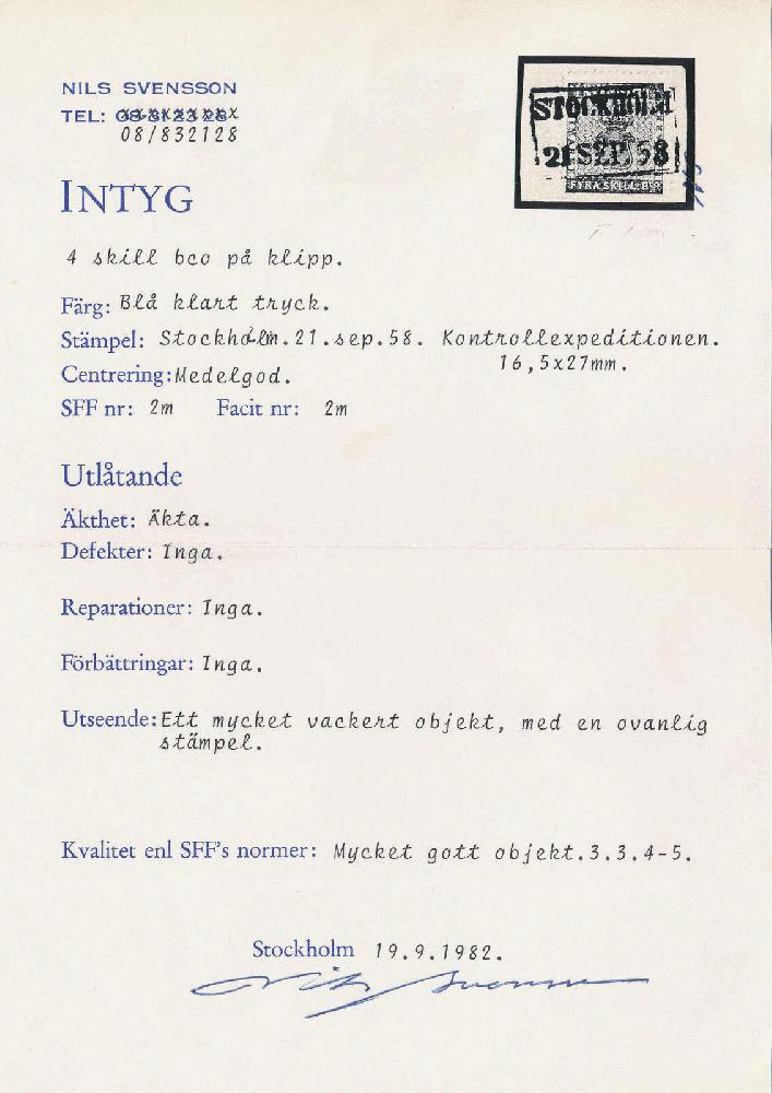 | Zusatzinformationen und Suchstichworte: | Postiljonen 237. Int. Briefmarken Auktion 29. September - 01. Oktober 2022 Los 980 Schweden Skilling Banco Arrival canc. "STOCKHOLM 21.SEP 58" on 4 Sk. Bco blue on small piece. Cert. Nils Svensson. VERY FINE & SCARCE. Zuschlag 190,00 EUR |