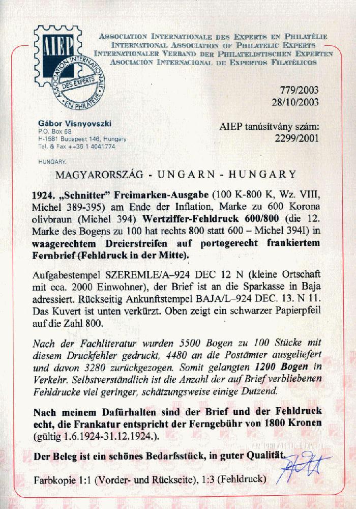 | Prüfer: | Visnyovszki, Gábor (AIEP (Association internationale des experts en philatélie)) |