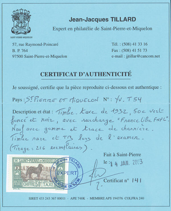 | Zusatzinformationen und Suchstichworte: | Kelleher 774. Auktion 13. - 16. September 2022 Los 2609 St. Pierre et Miquelon Nachgebühr, 1942, "Frankreich Libre/F. N. F. L. " auf Neufundland Hund komplett (Scott J42-J46, J46a), Originalgummi (beide 3 Fr. Aufdrucke postfrisch), außergewöhnlich frisch, feinst bis Pracht, 25c, 30c und 50c signiert Bloch und anderen, 50c mit 2003 Tillard Zertifikaten. Yvert T 52-56,56a; € 2,689 ($3,010). Scott $2,334. Nur 735 des 25c, 789 des 30c und 216 des 50c wurden verkauft. . Zuschlag 700,00 USD |