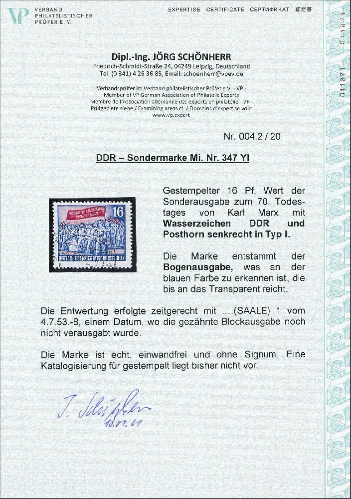 | Zusatzinformationen und Suchstichworte: | 185. Dresdner Briefmarken Auktion 21.-22. September 2022 Los 3668 DDR 16 Pfg. mit seltenem Wz. YI, unregelmäßig gezähnt, gestempelt FREIBERG (SACHS) 4.7.53, Attest (mit nicht korrekter Stempelangabe) vom 13. 1. 21 "einwandfrei" Schönherr VP (-,-) Ausruf 400,00 EUR |